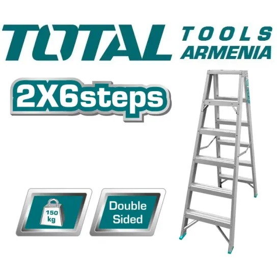 Երկկողմանի սանդուղք 2 x 6 քայլ TOTAL THLAD01061