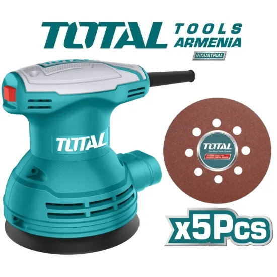 - TOTAL TF2031256 Էքսցենտրիկ հղկող մեքենան նախատեսված է փայտե, մետաղական, պոլիմերային մակերևույթների և պատերի չոր ծածկույթների հարթեցման համար : Այն անփոխարինելի գործիք է փայտամշակման, ներքին հարդարման, ավտոմոբիլային, կահույքի արտադրության և նորոգման ժամանակ : Մոդելը ունի թեթև և ամուր պատյան, որը պատրաստված է պլաստիկից և ալյումինից, էրգոնիկ դիզայնով, հագեցած է հարմար բռնակով և պաշտպանիչ պատյանով :