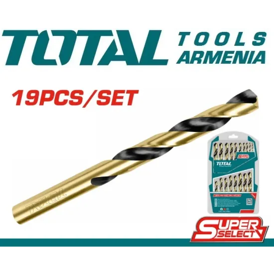 HSS սպիրալաձև գայլիկոնների հավաքածու 19հատ TOTAL TAKSDB9195