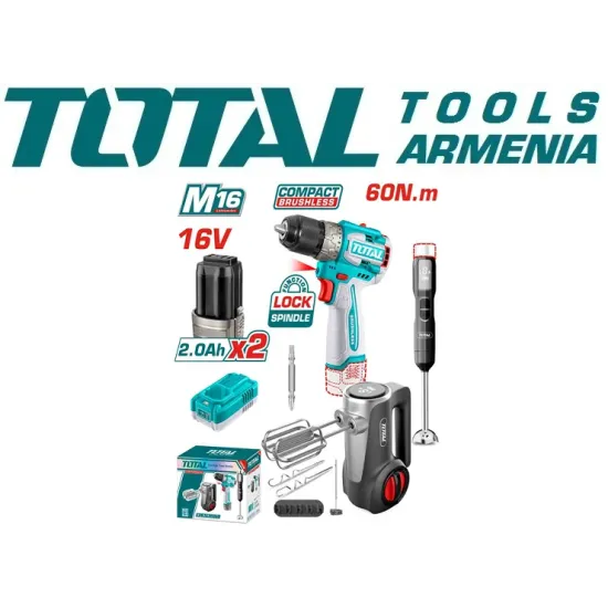 Կոմբո հավաքածու պտուտակադարձիչ մարտկոցային, հարիչ, բլենդեր, մարտկոց և լիցքավորիչ TOTAL TCKLI1638