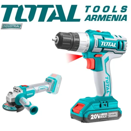 Անկյունային Հղկող Մեքենա և պտուտակադարձիչ 20V մարտկոցով TOTAL TCKLI20155