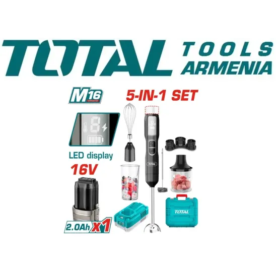 Կոմպլեկտում 1 հատ 500 մլ կտրատիչ աման 1 հատ հարիչ 1 հատ չափիչ բաժակ 1 հատ կաթի փրփրացնող 1 հատ պահեստավորման փակագիծ 1 հատ 2.0 Աժ մարտկոց (TFBLI1620) 1 հատ լիցքավորիչ Լիցքավորման վոլտ՝ 220-240 Վ~50-60 Հց (TFCLI1613)