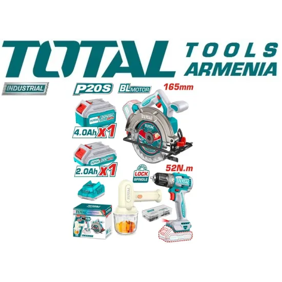շրջանաձև սղոց և պտուտակահան, անլար ձեռքի խառնիչ, մարտկոց և լիցքավորիչ TOTAL TOSLI240583