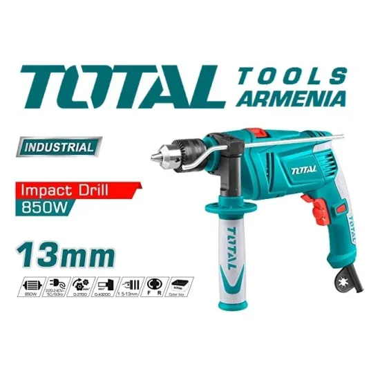 Total TG109136 հարվածային շաղափիչը (Դռել) սնուցվում է 220 Վ ցանցից և ապահովվում 850 Վատտ հզորություն :