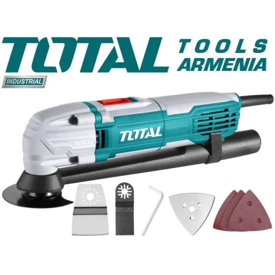 • TOTAL TS3006 բազմաֆունկցիոնալ գործիքը կարող է հեշտությամբ և ճշգրիտ կտրել տարբեր անկյան տակ, կտրել անցքեր, սղոցել փոքր աշխատանքային կտորներ, մանրացնել, հղկել :