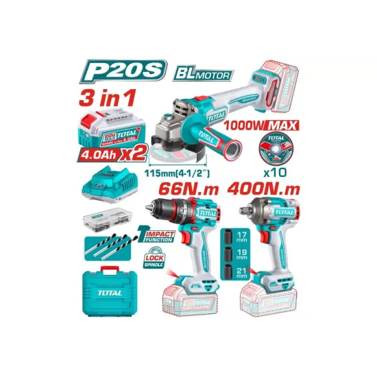 Մարտկոցային գործիքների հավաքածու (3 հատ) TOTAL TOSLI241291