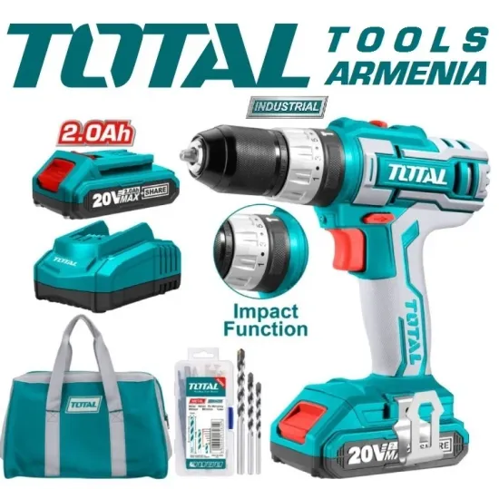 Հարվածային դռել - պտուտակահան մարտկոցով   Total TIDLI2002 20 Վ, 45 Նմ +1 մարտկոց