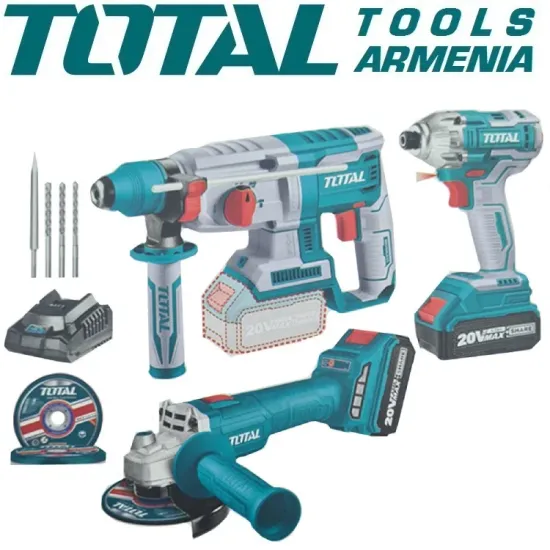 Լիթիում - իոնային 20Վ գործիքների հավաքածու 3կտոր TOTAL TOSLI2301515