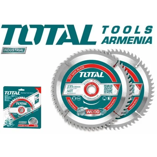TOTAL TAC2316252 - սղոցի բերանը նախատեսված է փայտի երկայնական և խաչաձև կտրման համար : Ատամներն ամրացված են կարբիդային ներդիրներով ` արտադրողականության բարձրացման և շեղբի պիտանելիության համար : Դրանք երեք կողմերից խտացված են ՝ կտրող եզրերին հերթափոխվող թեքերով : Այս ատամները զգալիորեն երաշխավորում են մաքուր կտրումը :