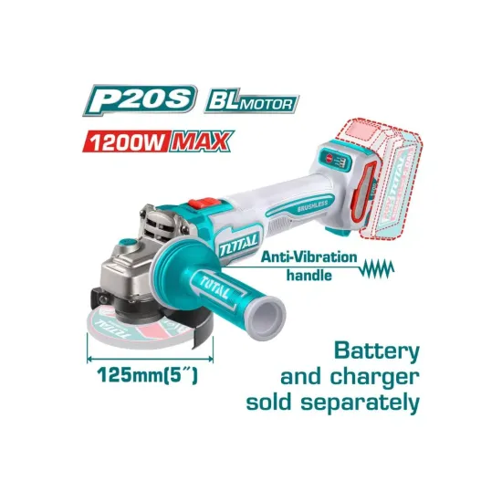 Անխոզանակ շարժիչ Վոլտաժ՝ 20 Վ Մուտքային առավելագույն հզորություն՝ 1200 Վտ Առանց բեռնման արագություն՝ 3000 / 6000 / 9000 պտույտ/րոպե Սկավառակի տրամագիծ՝ 125 մմ Առանցքի պտուտակ՝ M14 Հակաթրթռումային բռնակ Սկավառակը չի ներառվում Մարտկոցը և լիցքավորիչը վաճառվում են առանձին Փաթեթավորված է գունավոր տուփի մեջ