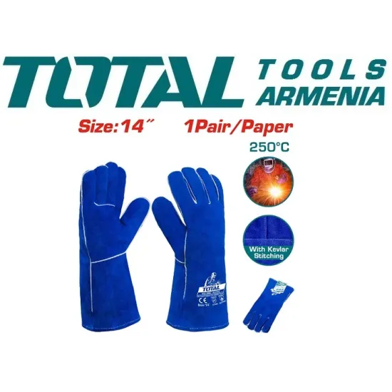 Համակցված կաշվե ձեռնոցներ TOTAL TSP15014-ը պաշտպանում է մեխանիկական վնասներից : Ապահովում են աշխատանքի ընթացքում անվտանգության ապահովումը : Պատրաստված է ամուր և բնական կաշվից : Այն երաշխավորում է երկար ծառայության ժամկետը : Ձեռնոցները հուսալիորեն պաշտպանում են ձեռքերը կտրվածքներից , ծակոցներից , քերծվածքներից և այլ մեխանիկական վնասվածքներից :