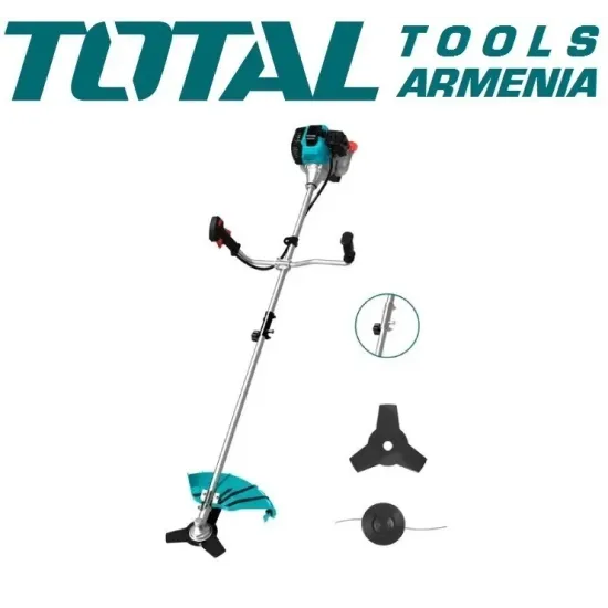 - TOTAL բենզինային խոտհնձիչը հուսալի , հավասարակշռված և հարմար գործիք է պարտեզի համար : Շնորհիվ իր էլեգանտ , էռգոնոմիկ ձևի , այն կարող է օգտագործվել ամենադժվար և անհասանելի վայրերում , որտեղ խոտհնձի օգտագործումը դժվար է : Ժամանակակից , լավ մտածված դիզայնը թույլ է տալիս ապահով կերպով պահել հարմարվողական սարքը ձեռքերում և կատարել աշխատանքը հեշտությամբ , արդյունավետորեն և առանց ջանքերի : TOTAL խոտհնձիչը հագեցած է 45 կուբ / սմ ծավալով բենզինային 2 - հարվածանոց շարժիչով , 1250 Վտ հզորությամբ ՝ 8000 պտտ / րոպե առավելագույն արագությամբ : Խոտհնձիչի վառելիքի բաքի ծավալը 1200 մլ է : Կտրող լայնությունը կազմում է 420 մմ : Կտրելու համար օգտագործվում է 2 մմ x 5 մ գիծ : Այն գազոնների և այգիների ամենօրյա խնամքի համար անփոխարինելի գործիք է : Օգտագործման հարմարավետության համար կոնստրուկցիան տրամադրում է երկրորդ բռնակ :