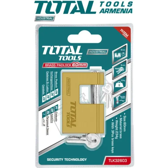 TOTAL TLK32603 արույրե կողպեքն օգտագործվում է պահարանները կողպելու համար : Այն պատրաստված է արույրից , ունի առաձգականության բարձր ամրություն , ուստի այն դիմակայում է մեխանիկական վնասումներին :