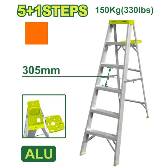 Ալյումինե միակողմանի աստիճան (գործիքների սկուտեղով) 5+1 քայլ DTLD4H06