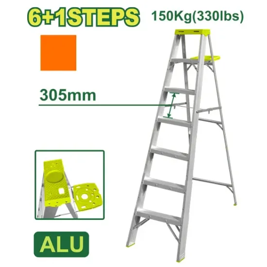 Ալյումինե միակողմանի աստիճան (գործիքների սկուտեղով) 6+1 քայլ DTLD4H07
