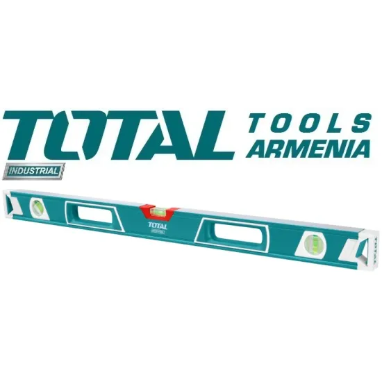 Ալյումինի կոնստրուկցիայի հարթաչափը՝ 800 մմ TOTAL TMT2806 - ը, ուղղահայաց և հորիզոնական հարթության շեղման հայտնաբերման հուսալի ձեռքի գործիք է, որի մակարդակը անփոխարինելի է շինարարության մեջ : Գործիքն ունի 3 աչք և ամուր ալյումինե պատյան :