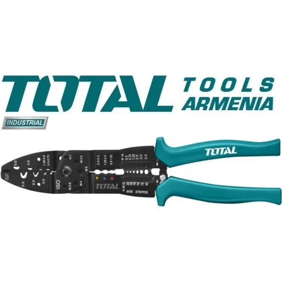 TOTAL THT15101 - 250 մմ մալուխի տափակաբերան աքցանը ունի մի քանի գործառույթ : Գործիքը հեռացնում է լարերից մեկուսացումը , օգտագործվում է մալուխները կտրելու և ամրակների հետ աշխատելու համար : Դաջված բռնակները նվազեցնում են սայթաքումը երկար օգտագործման ընթացքում :