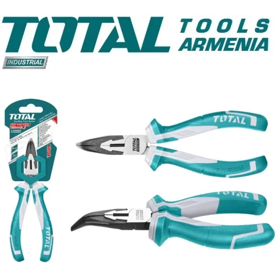 Տափակաբերան թեք երկար քթով աքցան 160 մմ TOTAL THT24616 - ն օգտագործվում է այն աշխատանքներում , որոնք պահանջում են փոքր մասերի գործիքով բռնում : Պատրաստված են քրոմ վանադիումի պողպատից , որի շնորհիվ ունեն ավելացված աշխատանքային սպասարկման ժամկետ: Բռնման և օգտագործման հարմարավետությունը , ձեռքի սահքի բացակայությունն ապահովվում է բռնակների երկու բաղադրիչ նյութով :