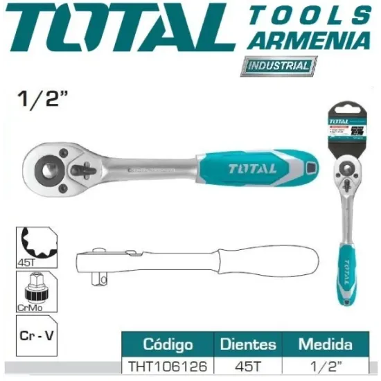 TOTAL THT106126 -ը հուսալի ձեռքի գործիք է : Պատրաստված է քրոմ վանադիումից և քրոմ մոլիբդենի պողպատից , որն ապահովում է դրա ամրությունն ու հարմարավետությունը : Ձեռքից չի սայթաքում : Անվտանգ , կոմպակտ , խելացի և օգտագործողի համար առավել հարմարավետ :