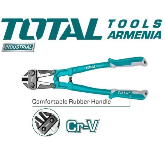 Պտուտակի կտրիչ 900 մմ TOTAL THT113366 - ը օգտագործվում է պտուտակներ, ձողեր, կցամասեր կտրելու համար : Ապրանքի աշխատանքային մասը պատրաստված է քրոմ-վանադիումային պողպատից, որի շնորհիվ այն դիմակայում է դեֆորմացիային և կոռոզիային : Բռնակները պատրաստված են պոլիմերային նյութերից ` հարմարավետ աշխատանքի և չսայթաքելու համար: Պտուտակի կտրիչի երկարությունը՝ 900 մմ :