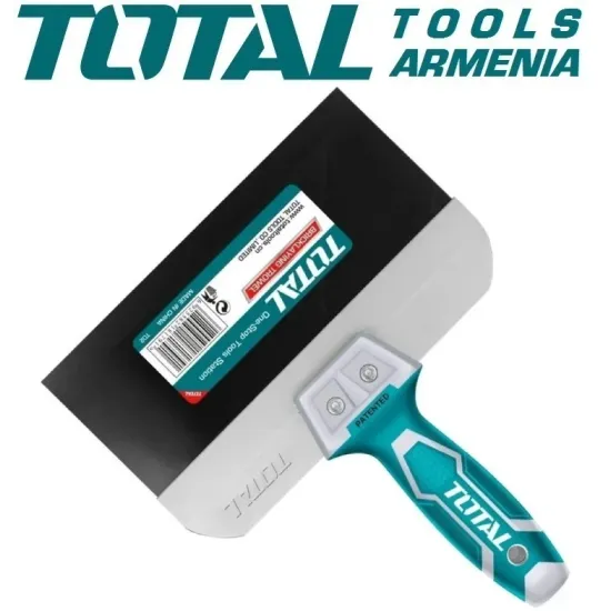 TOTAL THPUT38300 - ը ձեռքի հարմար և հուսալի գործիք է սվաղման համար : Աշխատանքային մասը պատրաստված է չժանգոտվող պողպատից : Հարմարավետ , երկու բաղադրիչ բռնակ , որը չի սայթաքում ձեռքում : Ապրանքը հագեցած է բարձր շեղբով , որը թույլ է տալիս աշխատել մեծ ծավալով շինարարական խառնուրդների հետ ` ապահովվելով դրանց կիրառման արագությունն ու միատարրությունը :