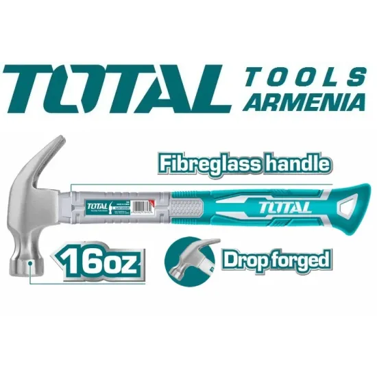 TOTAL THTS7316 - ը հարվածային գործիք է , որը օգտակար է ատաղձագործության ոլորտում և առօրյա կյանքում : Հարվածային ծայրը պատրաստված է կարծրացված 45 ածխածնային պողպատից , որի շնորհիվ այն ունի բարձր ամրություն և աշխատանքային զգալի ռեսուրս : Մի կողմից , այն ունի կլոր հարվածող մաս , իսկ մյուս կողմից ՝ մեխահան : Ապակեթելային բռնակը կանխում է գործիքի ձեռքից սահելուն: