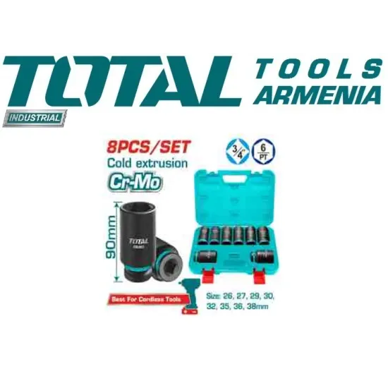 Խորը ազդեցության հարվածային գլխիկների հավաքածու 8հատ 3/4դյույմ TOTAL THKISD34082L