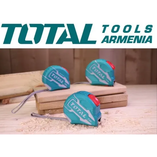 TOTAL TMT126251M - ժապավեն չափիչը կոմպակտ և հարմար գործիք է տարբեր տեսակի աշխատանքների ընթացքում չափումներ կատարելու համար : Պողպատե ժապավենը ունի չափիչ սանդղակ ՝ մետրային : Կրկնակի սողնակ կոճակը թույլ է տալիս  չափումներն իրականացնել առանց օգնության :  Դիզայնում  ժապավենի առկայությունը նախատեսվում է օգտագործողի հարմարավետության համար :