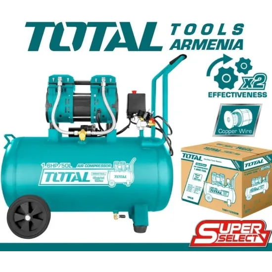 Անձայն առանց յուղի կոմպրեսոր 50 լ 1200 Վտ TOTAL TCS1120508 / Արտադրական/INDUSTRIAL