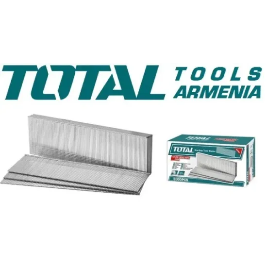 TOTAL TAC918501 - մեխերն օգտագործվում են ստեպլերի հետ աշխատելիս : Նախատեսված է հյուսված թիթեղների նյութը փայտե հիմքին ամուր կցելու համար : Այն օգտագործվում է շինարարության , հարդարման աշխատանքների , ինչպես նաև կահույքի արտադրության մեջ : Պատրաստված է ածխածնային պողպատից և կարծրացված է :