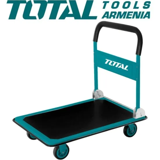 TOTAL THTHP11502 պլատֆորմային 4 - անվանի սայլը նախատեսված է պահեստներում, մեծածախ բազաներում, առևտրի կենտրոններում մինչև 150 կգ կշռող բեռները տեղափոխելու համար : Հնարավոր է մեծածավալ իրեր տեղափոխել ՝ պլատֆորմի մեծ չափի շնորհիվ : Կառուցվածքը ամբողջությամբ զոդված է և նախատեսված է բարձր բեռների համար:
