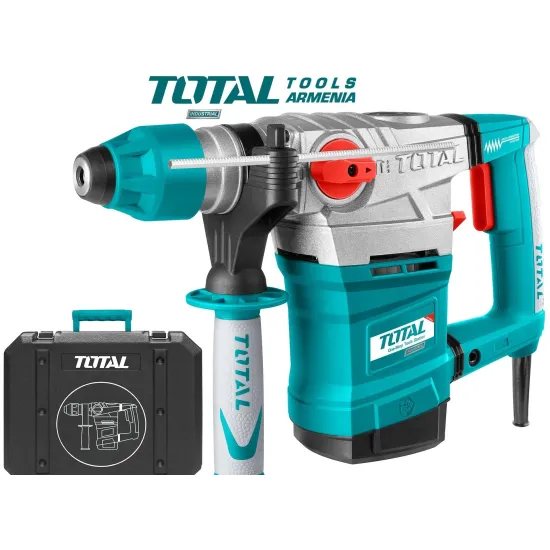 - Հորատիչն ունի երեք ռեժիմ : Կարող եք մանրացնել նյութեր և փորել աղյուսե կամ բետոնե պատեր : Եթե տեղադրեք գայլիկոնի պատրոն , ապա կկարողանաք աշխատել փայտի և մետաղական պրոֆիլի հետ : Բետոն հորատելիս առավելագույն տրամագիծը կարող է հասնել՝ 80 մմ , փորվածքը՝ 36 մմ : Վերցնելով TOTAL պտտվող մուրճը, դուք կզգաք ամբողջ ուժն ու հզորությունը , իմանալով, որ նրան անգամ բետոնը չի դիմանում :