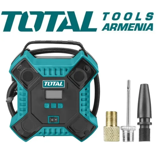 • Մեքենայի կոմպրեսոր TOTAL TTAC1601 - ը  անիվների և փչովի ապրանքների փչման սարք է : Այս մոդելը գործում է 12 Վ էլեկտրամատակարարմամբ, 10 Ա ընթացիկ սպառումով :