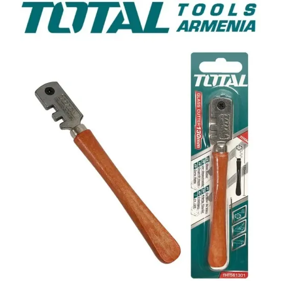 TOTAL THT561301 -ը ապակի կտրելու հուսալի ձեռքի գործիք է , որը տարբերվում է պարզությամբ և օգտագործման հարմարավետությամբ : Ամուր փայտե պատյանն ապահովում է երկար սպասարկման երաշխիք :