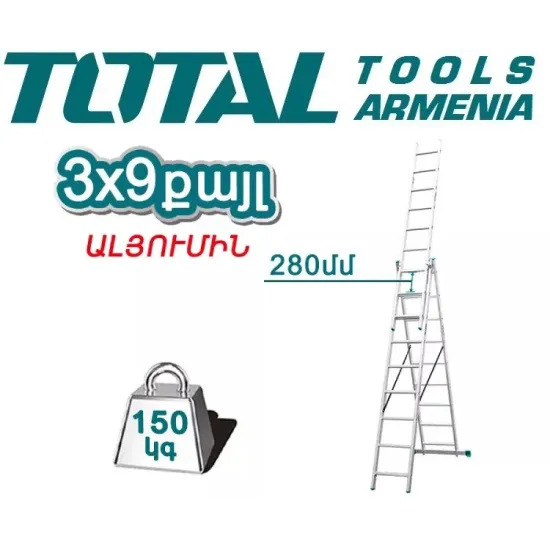 Եռամաս երկարացվող սանդուղք TOTAL THLAD03391