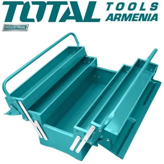 TOTAL THT10701 - ը բաղկացած է 5 բաժիններից , որոնք դասավորված են 3 շերտերով՝ ընդարձակ և հարմարավետ : Դրա մեջ կարող եք կոկիկորեն տեղադրել գործիքներ և սարքեր , դրանք կոմպակտ պահպանելու և տեղափոխելու համար : Տուփը պատրաստված է ամուր թերթիկային պողպատից , ուստի ամուր է  և դիմացկուն  մաշվածությանը :