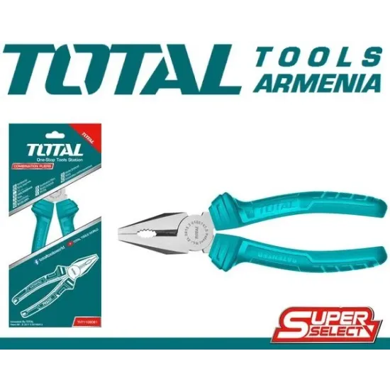 Համակցված տափակաբերան աքցան 200 մմ TOTAL THT110812 - ը ձեռքի գործիք է փականագործի աշխատանքի համար : Քրոմապատ վանադիումի պողպատե աշխատանքային մակերեսը ապահովվում է տափակաբերան աքցանի երկար շահագործում : Երկու բաղադրիչ բռնակների շնորհիվ գործիքը չի սահում և պահվում է հարմարավետ :