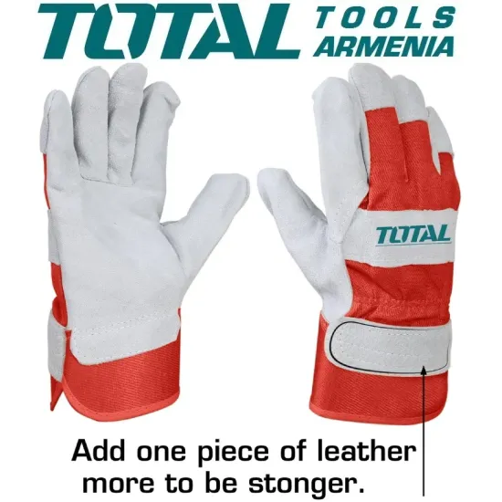 Համակցված կաշվե ձեռնոցներ TOTAL TSP14101 -ը պաշտպանում է մեխանիկական վնասներից : Ապահովում են աշխատանքի ընթացքում անվտանգության ապահովումը : Պատրաստված է ամուր և  բնական կաշվից : Այն երաշխավորում է երկար ծառայության ժամկետը : Ձեռնոցները հուսալիորեն պաշտպանում են ձեռքերը կտրվածքներից , ծակոցներից , քերծվածքներից և այլ մեխանիկական վնասվածքներից :