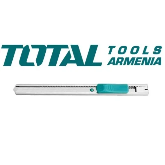 TOTAL THT5110906 - ն օգտագործվում է թուղթ , ստվարաթուղթ , պաստառ , բարակ գորգեր և այլ նյութեր կտրելու համար : Սայրը պատրաստված է ճապոնական ածխածնային պողպատից ` SK - 5 : Նորաձև կառուցվածքը շեշտում է մոդելի բոլոր դրական կողմերը :