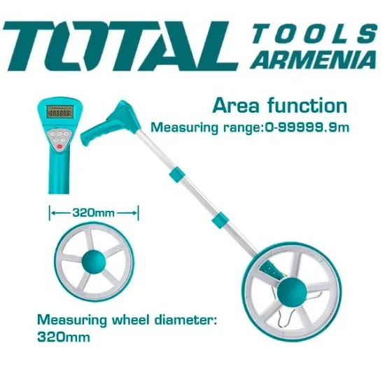 Անիվով թվային մետր TOTAL TMT19923 - ը օգտագործվում է հեռավորությունների պարզ և ճշգրիտ չափման համար : Թվային էկրանի լուսարձակը նպաստում է ցանկացած լույսի ներքո տվյալների ընթերցման հարմարավետությանը : Բռնակը ունի մատների հատուկ ակոսներ՝ գործիքը ամուր բռնելու համար : Չափման արդյունքը պահվում է սարքի ներքին հիշողության մեջ :