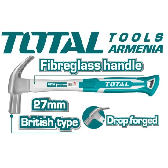 TOTAL THT73227 - ը հարվածային գործիք է , որն օգտագործվում է ատաղձագործական արհեստանոցներում և տնային պայմաններում աշխատելու համար : Այն տարբերվում է ամրությամբ , քանի որ գլուխը պատրաստված է կարծրացված պողպատից : Մի կողմում կա հարթ կլոր հարվածող մաս , իսկ մյուս կողմից ` մեխ քաշիչ : Ապակեթելային ապակին օգտագործվում է որպես բռնակի նյութ , որը նպաստում է հարմարավետ բռնելուն , կանխում է ձեռքից սայթաքումը և մեղմացնում հարվածները :