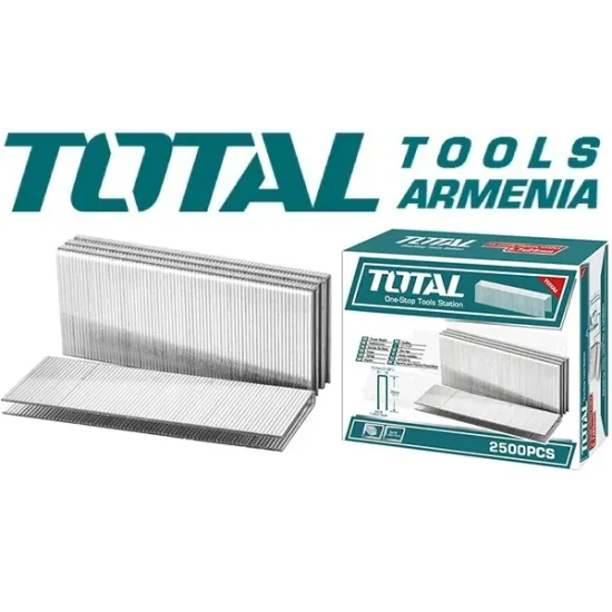 TOTAL TAC918352 - մեխերն օգտագործվում են ստեպլերի հետ աշխատելիս : Նախատեսված է հյուսված թիթեղների նյութը փայտե հիմքին ամուր կցելու համար : Այն օգտագործվում է շինարարության , հարդարման աշխատանքների , ինչպես նաև կահույքի արտադրության մեջ : Պատրաստված է ածխածնային պողպատից և կարծրացված է :