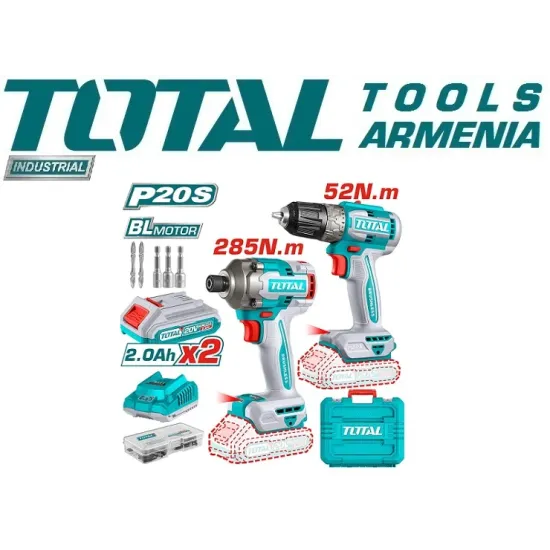 Կոմբո հավաքածու պտուտակահան և գայկավյորտ մարտկոցով TOTAL TCKLI20272