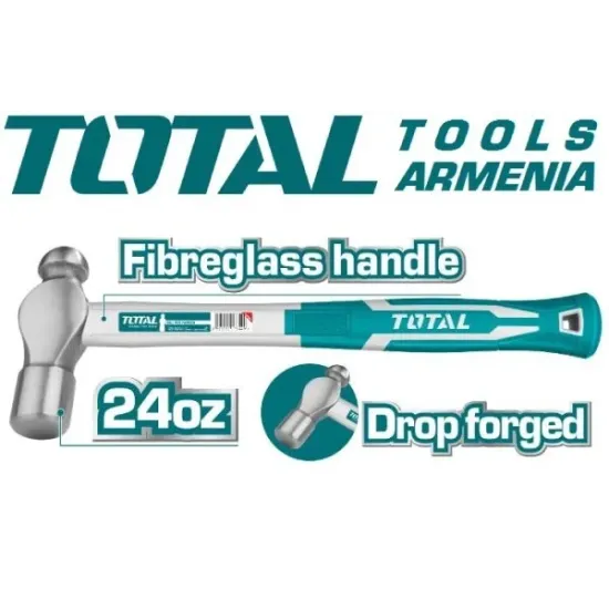 Գնդիկավոր մուրճ 660գ TOTAL THT74246- ը հարվածային գործիք է, որն օգտագործվում է ատաղձագործական արհեստանոցներում և տնային պայմաններում աշխատելու համար : Այն ամուր է, քանի որ գլուխը պատրաստված է կարծրացված պողպատից : Ապակեթելքը օգտագործվում է որպես բռնակի նյութ,որը նպաստելով հարմարավետ բռնելուն՝ կանխում է ձեռքից սայթաքումը , մեղմացնելով հարվածները :