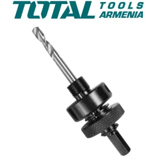 Ծակիչի սռնի TOTAL TAC4201- ը օգտագործվում է բիմետալ բիթերի հետ միասին : Սարքի  օգնությամբ թագը հուսալիորեն ֆիքսվում է փամփուշտում : Բռնակը  ապահովում է արդյունավետ աշխատանքը՝ առավելագույն ուժը փոխանցելով կտրող գործիքին : Պիլոտային հորատումը ապահովում է նախնական  և ճշգրիտ  հորատումը :
