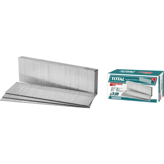 TOTAL TAC918381 - մեխերն օգտագործվում են ստեպլերի հետ աշխատելիս : Նախատեսված է հյուսված թիթեղների նյութը փայտե հիմքին ամուր կցելու համար : Այն օգտագործվում է շինարարության , հարդարման աշխատանքների , ինչպես նաև կահույքի արտադրության մեջ : Պատրաստված է ածխածնային պողպատից և կարծրացված է :