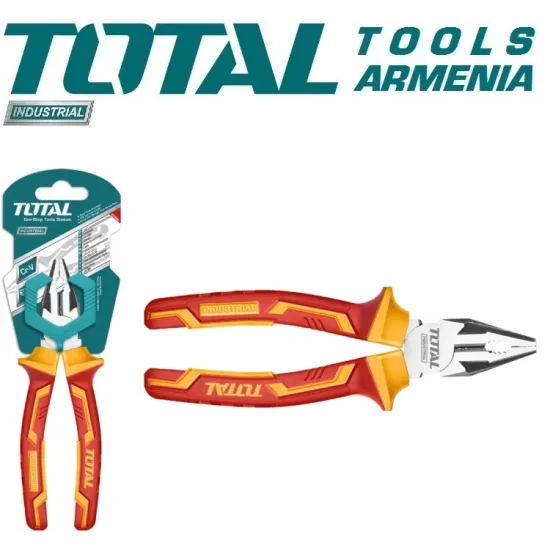 Դիէլեկտրական համակցված տափակաբերան աքցանները մինչև 1000 Վ, 200 մմ TOTAL THTIP2181 - ունեն կրկնակի մեկուսացում և իդեալական են բարձր լարման էլեկտրական աշխատանքի համար , մինչև 1000 Վ լարման տակ : Ապրանքը անհատապես փորձարկվել և հաստատվել է էլեկտրական կայաններում օգտագործման համար : Գործիքը շատ հարմար է օգտագործման համար , էրգոնոմիկ բռնակները հակասայթաքող ներդիրներով և պաշտպանիչ ճարմանդներով ապահովվում են հարմարավետ և անվտանգ աշխատանք :