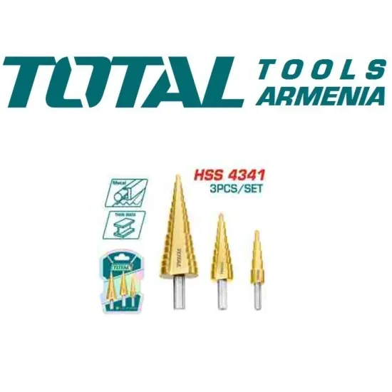 | Կոմպլեկտում | 3 հատ Քայլային գայլիկոնի հավաքածու 1 հատ 4-12 մմ, 2 մմ/աստիճան, ցողունի տրամագիծ՝ 6 մմ 1 հատ 4-20 մմ, 2 մմ/աստիճան, ցողունի տրամագիծ՝ 8 մմ 1 հատ 4-32 մմ, 2 մմ/աստիճան, ցողունի տրամագիծ՝ 10 մմ |