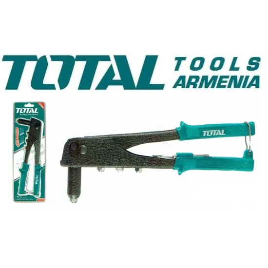 TOTAL 10,5 դյույմանոց ձեռքի ամրացման սարքը՝ ալյումինե պատյանով, 4-ը 1-ում (2.4 մմ, 3.2 մմ, 4 մմ, 4.8 մմ), ամուր և երկարակյաց , մեկ ձեռքով ամրացվող գործիք է : Իդեալական է մետաղի, պլաստիկի և կաշվի համար :
