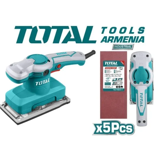 - TOTAL TF1301826 հղկող մեքենան նախատեսված է փայտե , մետաղական , պոլիմերային մակերևույթների և պատերի ծածկույթների չոր հարթեցման համար : Այս գործիքը անփոխարինելի գործիք է լինելու փայտամշակման , ներքին հարդարման , ավտոմոբիլային, կահույքի արտադրության և նորոգման ժամանակ : Մոդելը ունի թեթև և ամուր պատյան , որը պատրաստված է պլաստիկից և ալյումինից , էրգոնիկ դիզայնով , հագեցած է հարմար բռնակով և պաշտպանիչ պատյանով :
